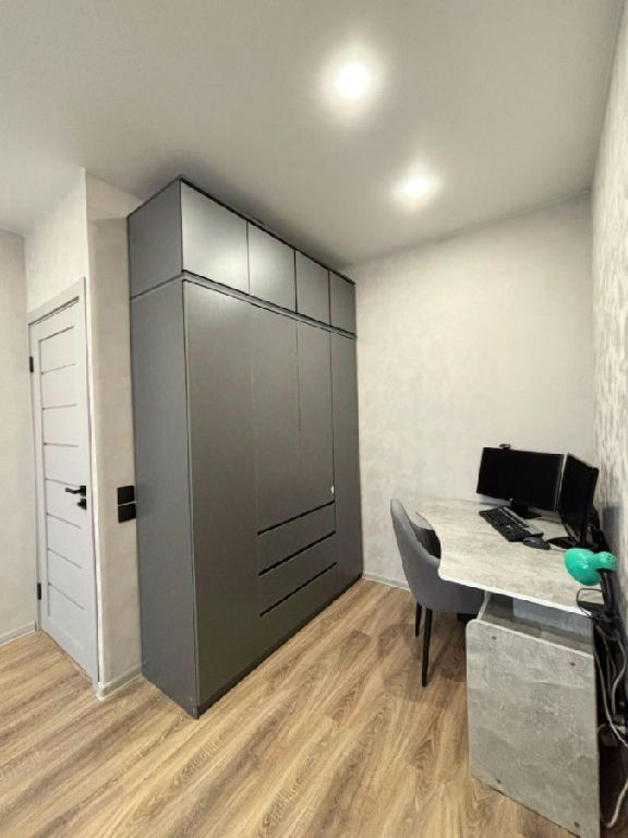 Остаётся мебель: кухонный гарнитур, вытяжка, диван, шкафы, комод, компьютерный стол.